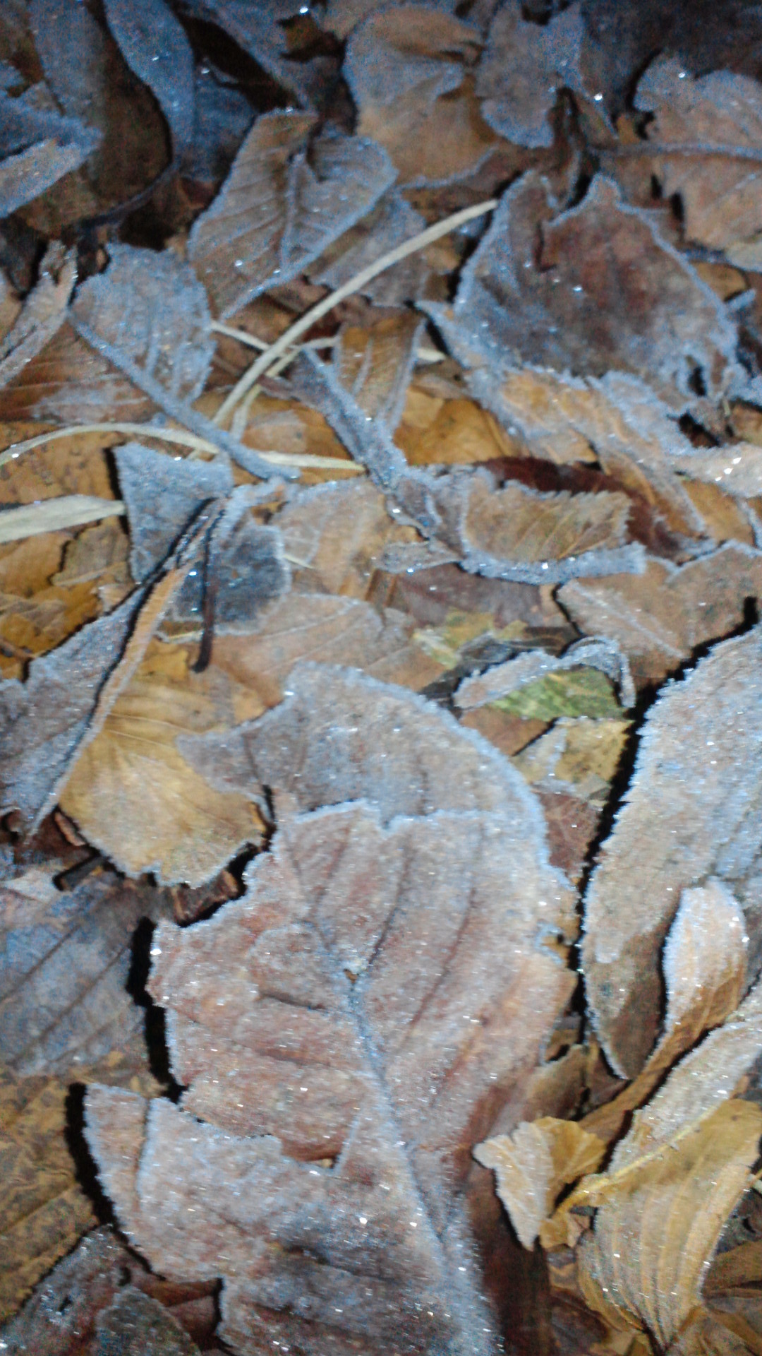 葉っぱが凍ってキラキラしていました