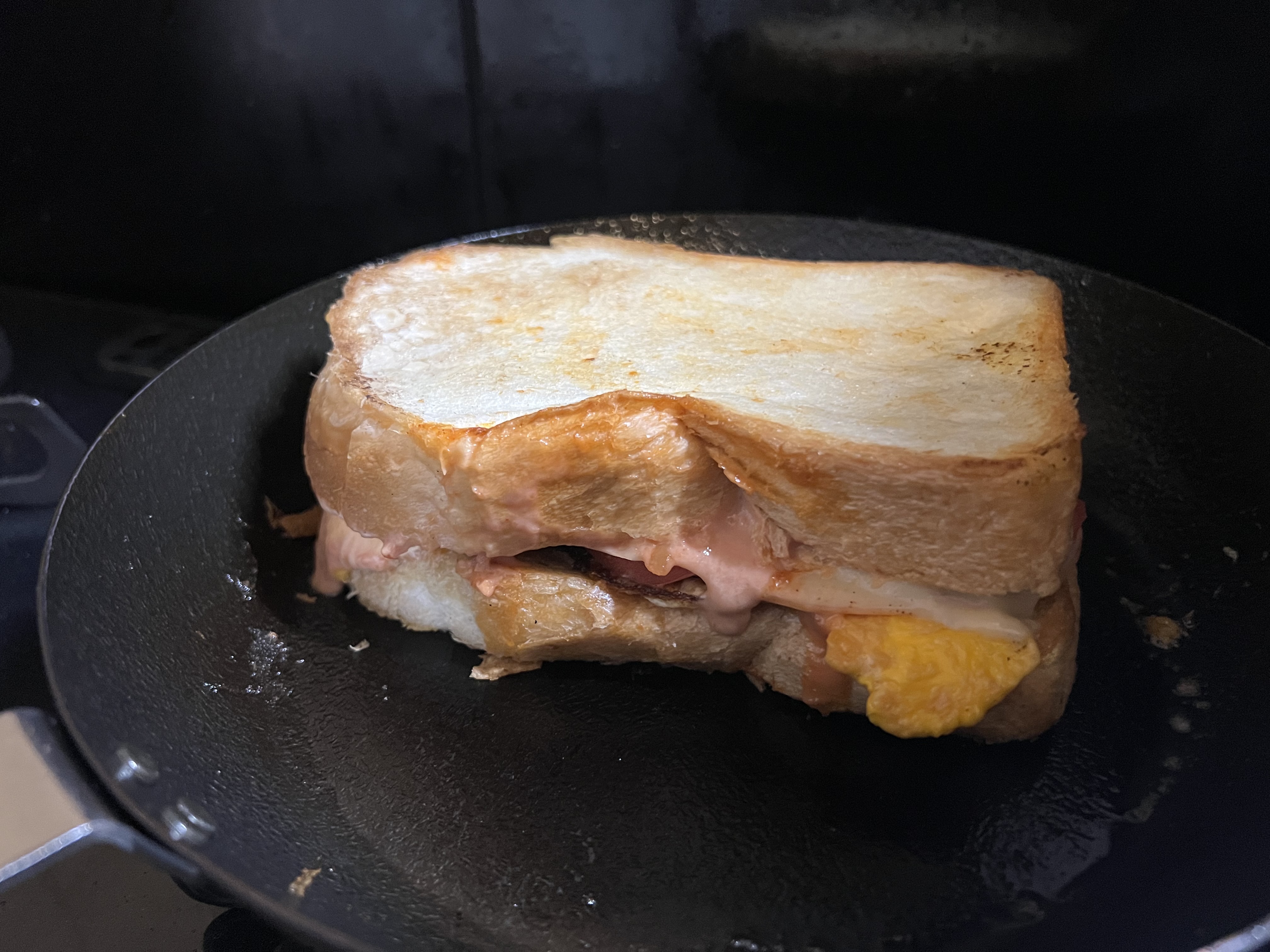 サンドした具は、目玉焼き(次はスクランブルエッグにしようと思う)、ハム、チーズ、塩コショウしたトマト、オーロラソース。