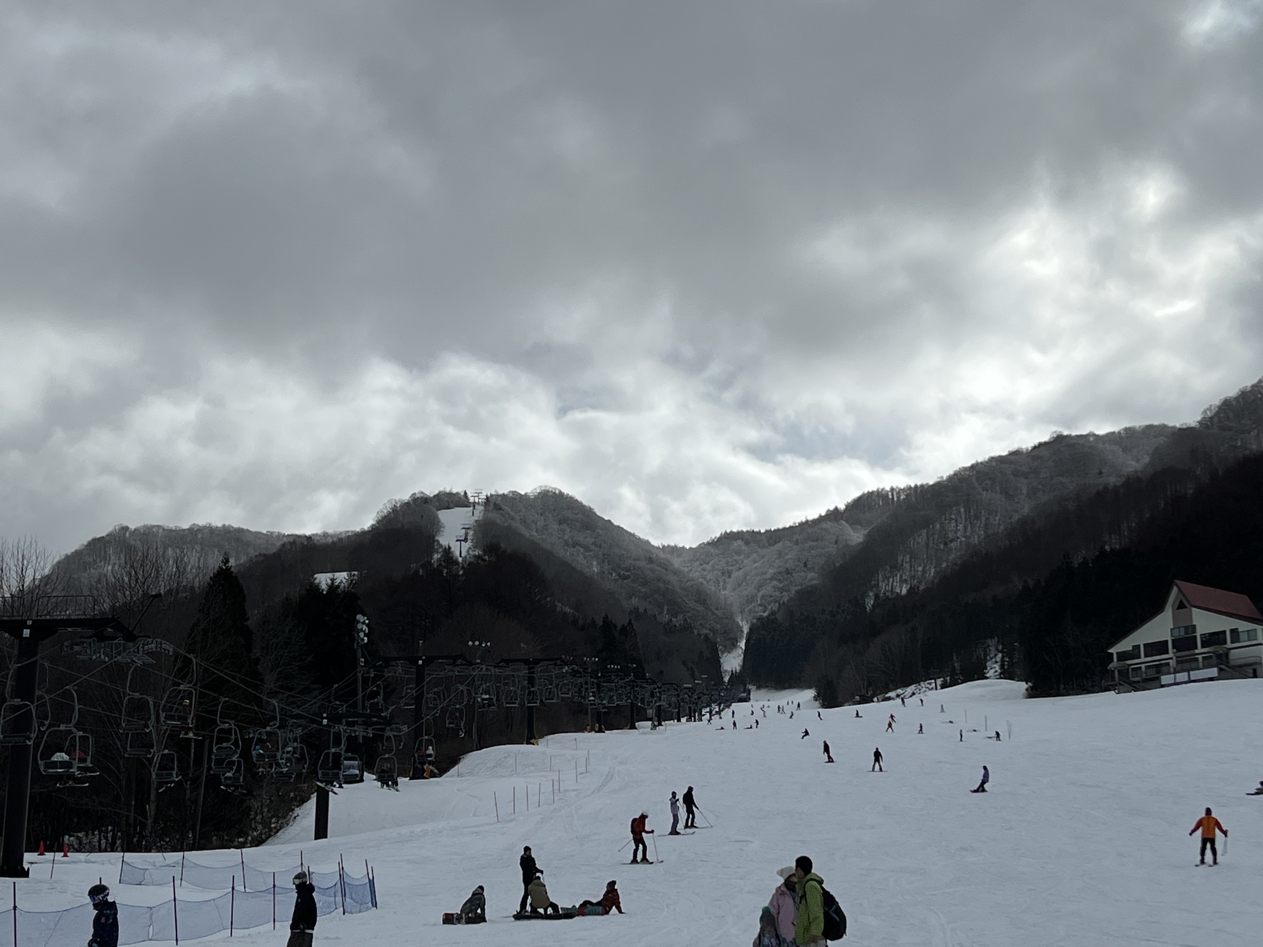 スキー場も例年より雪が少なく、なんとか滑れる感じ。