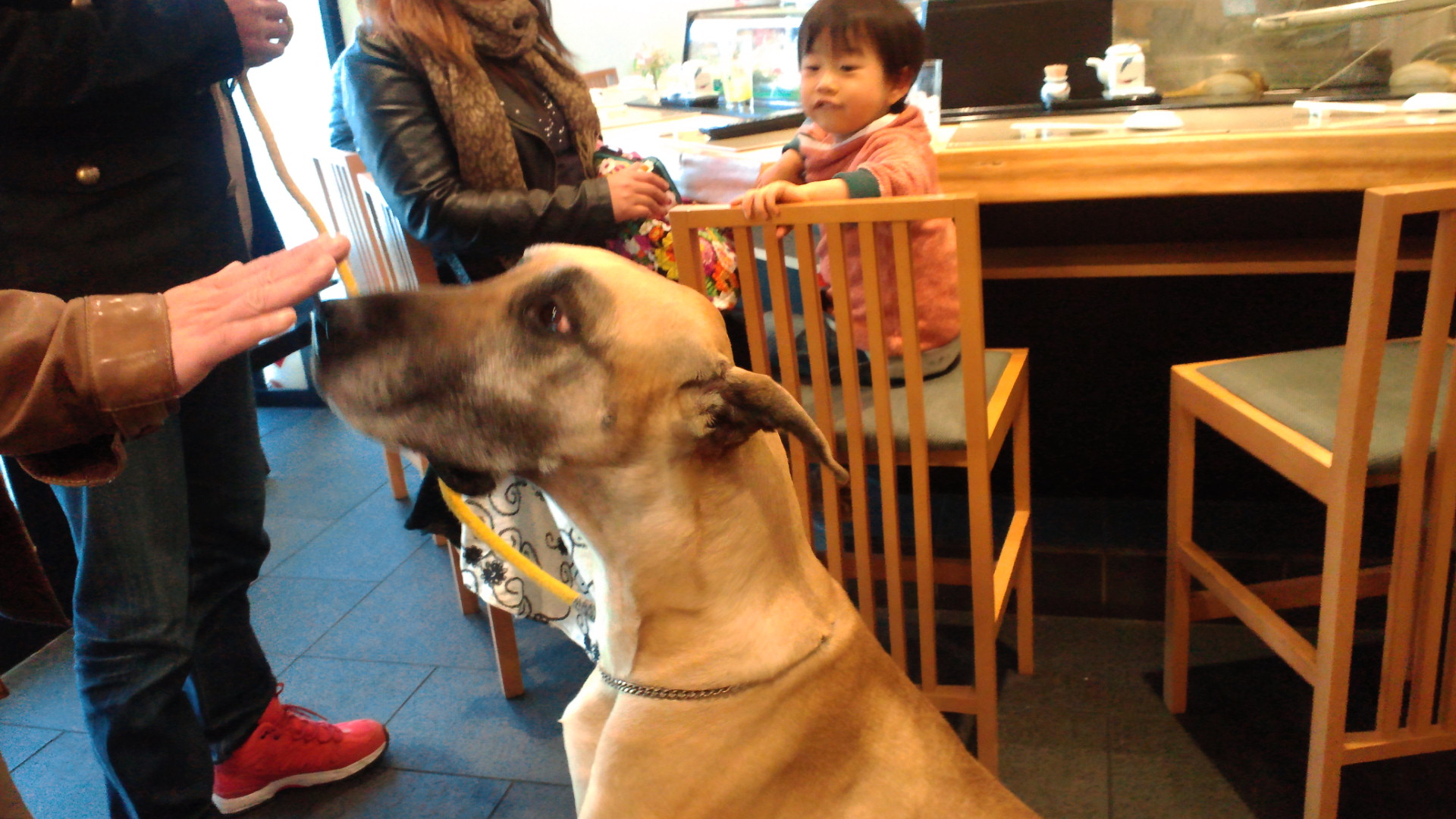 グレートデンのサラは、車の中でお留守番していたのですが、お店が私達の貸切でしたので、最後にご挨拶ということで。。。