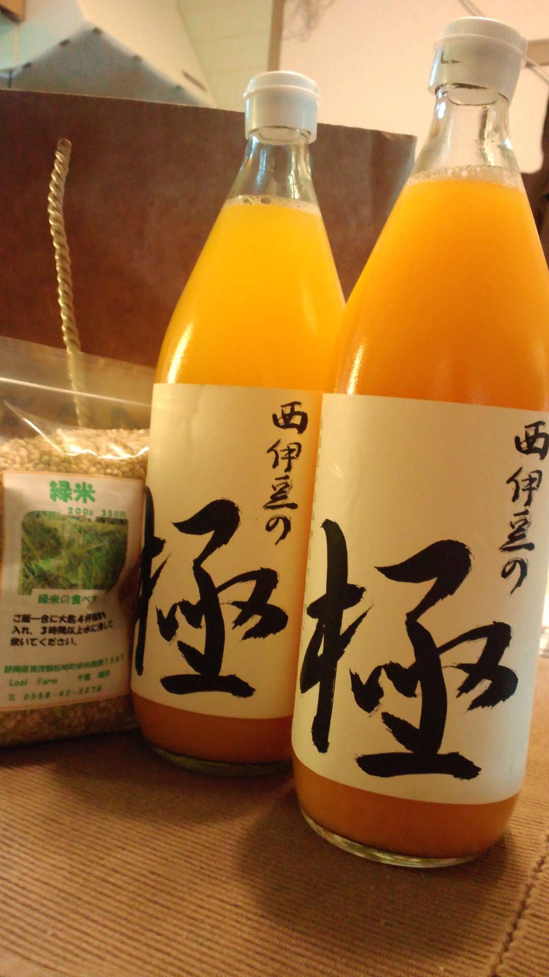 今年も西伊豆で作ったみかんジュースを頂いて、息子も大喜び