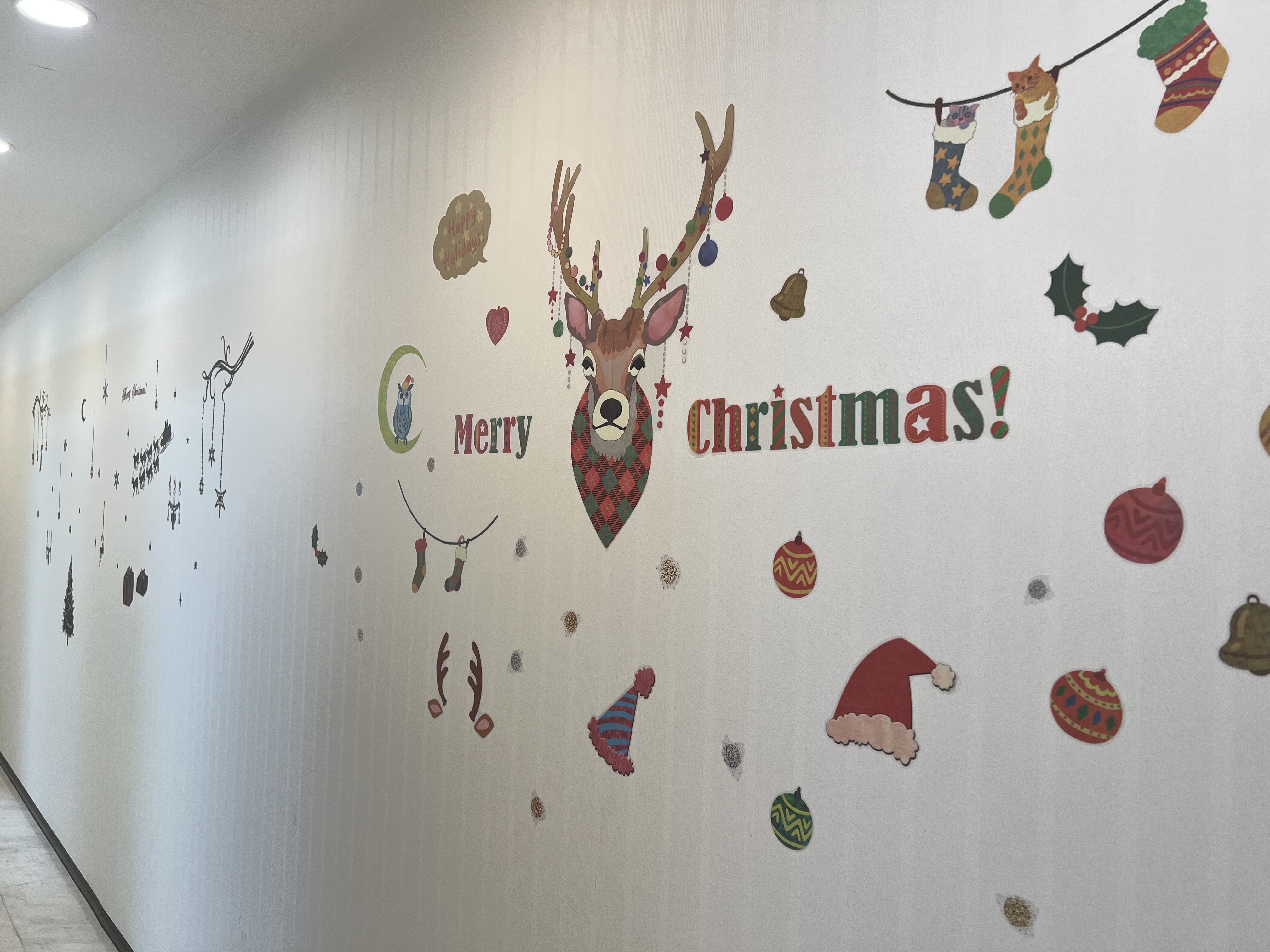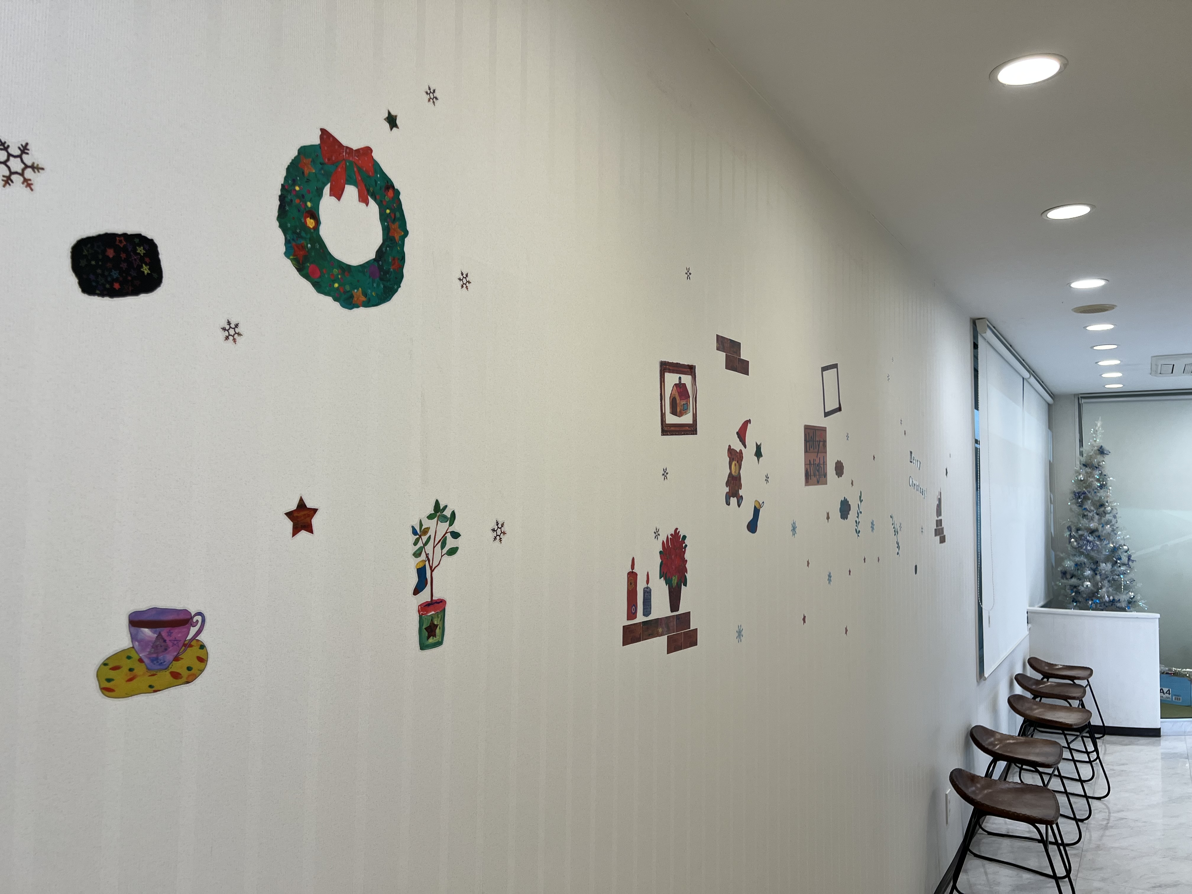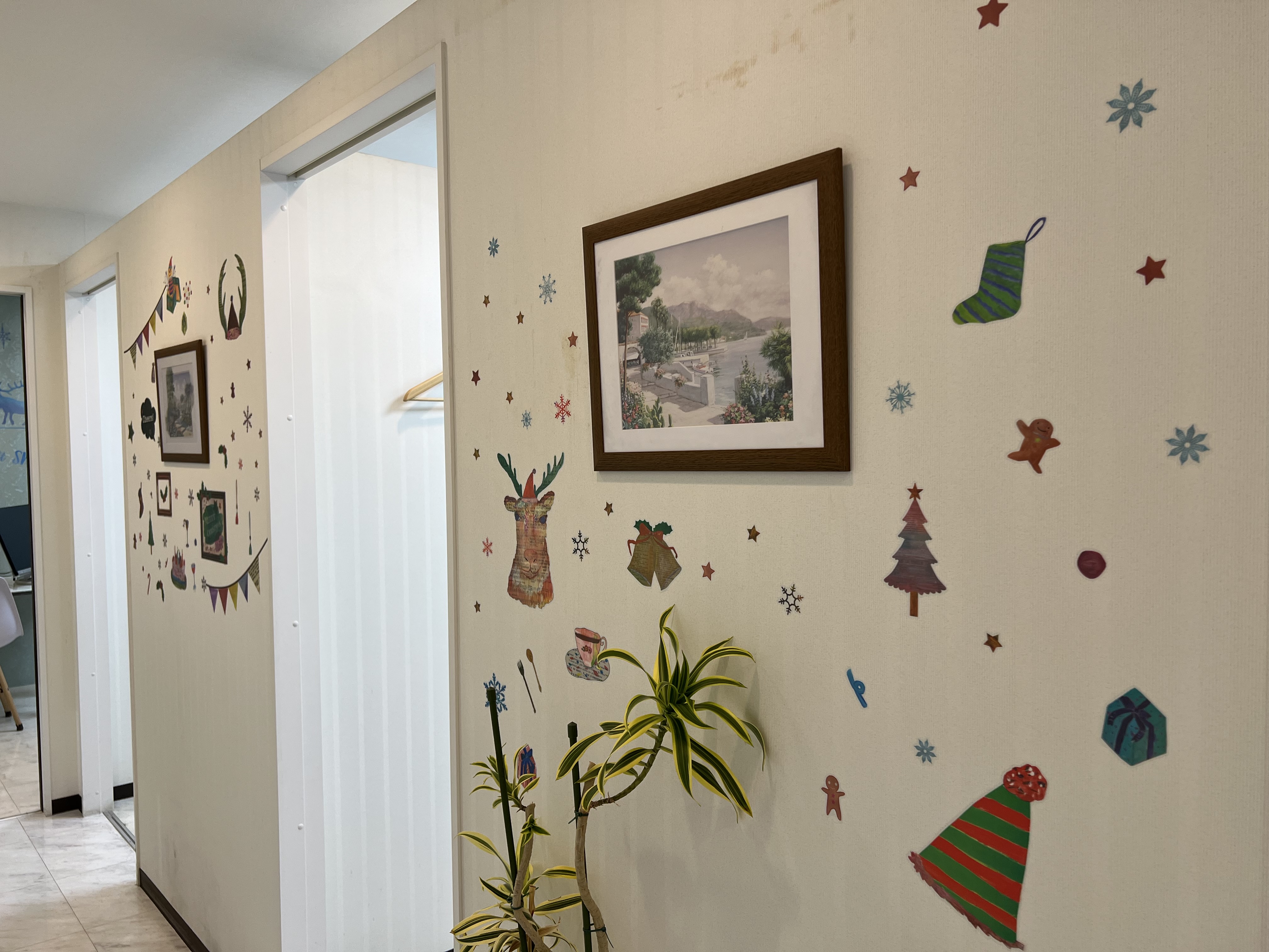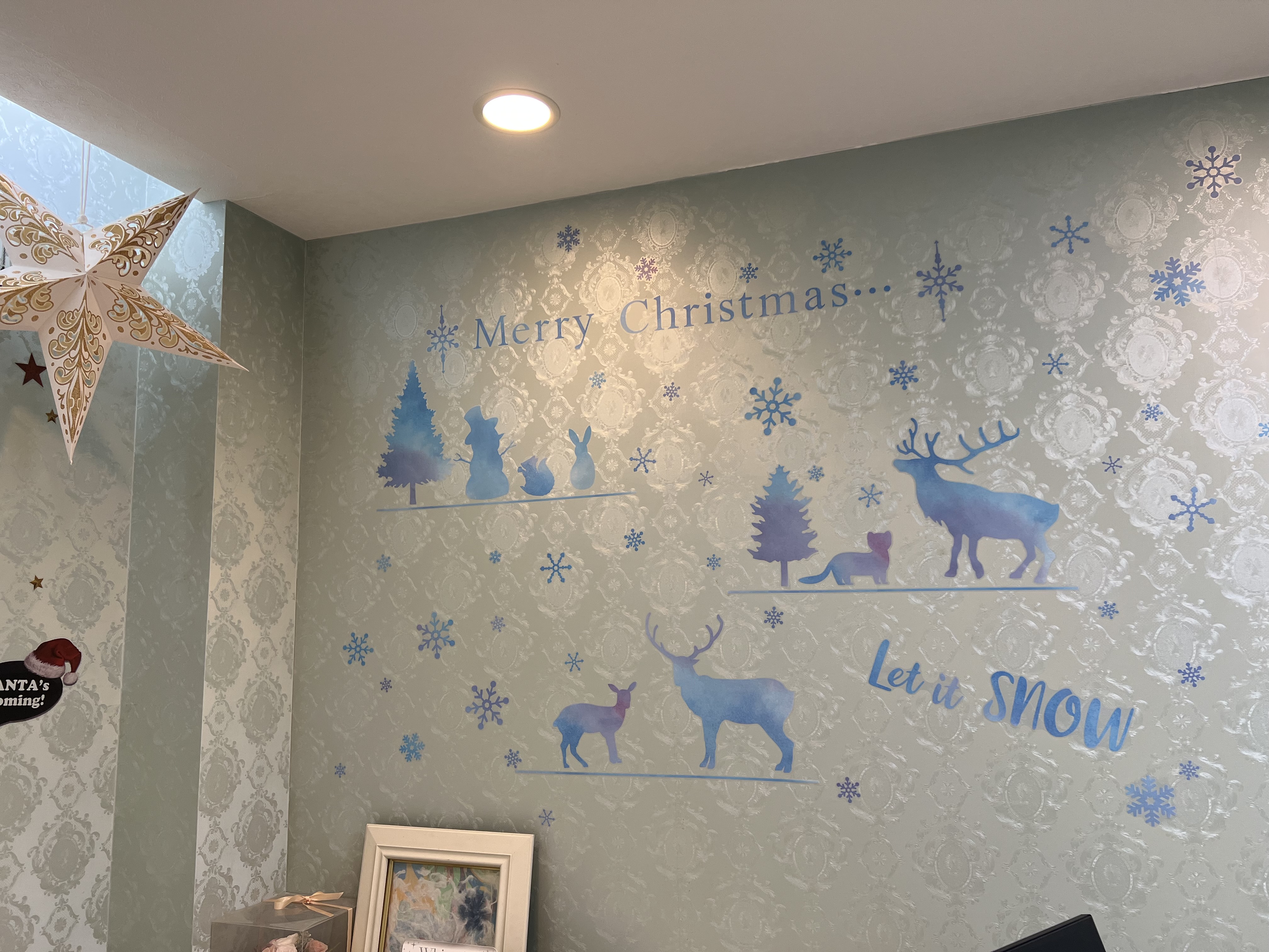 ハロウィンが終わり、11月に入ってすぐクリスマスバージョンに院内の模様替えをしました。
