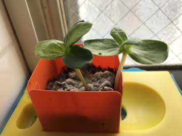 ヒマワリの種を植えて観察します。