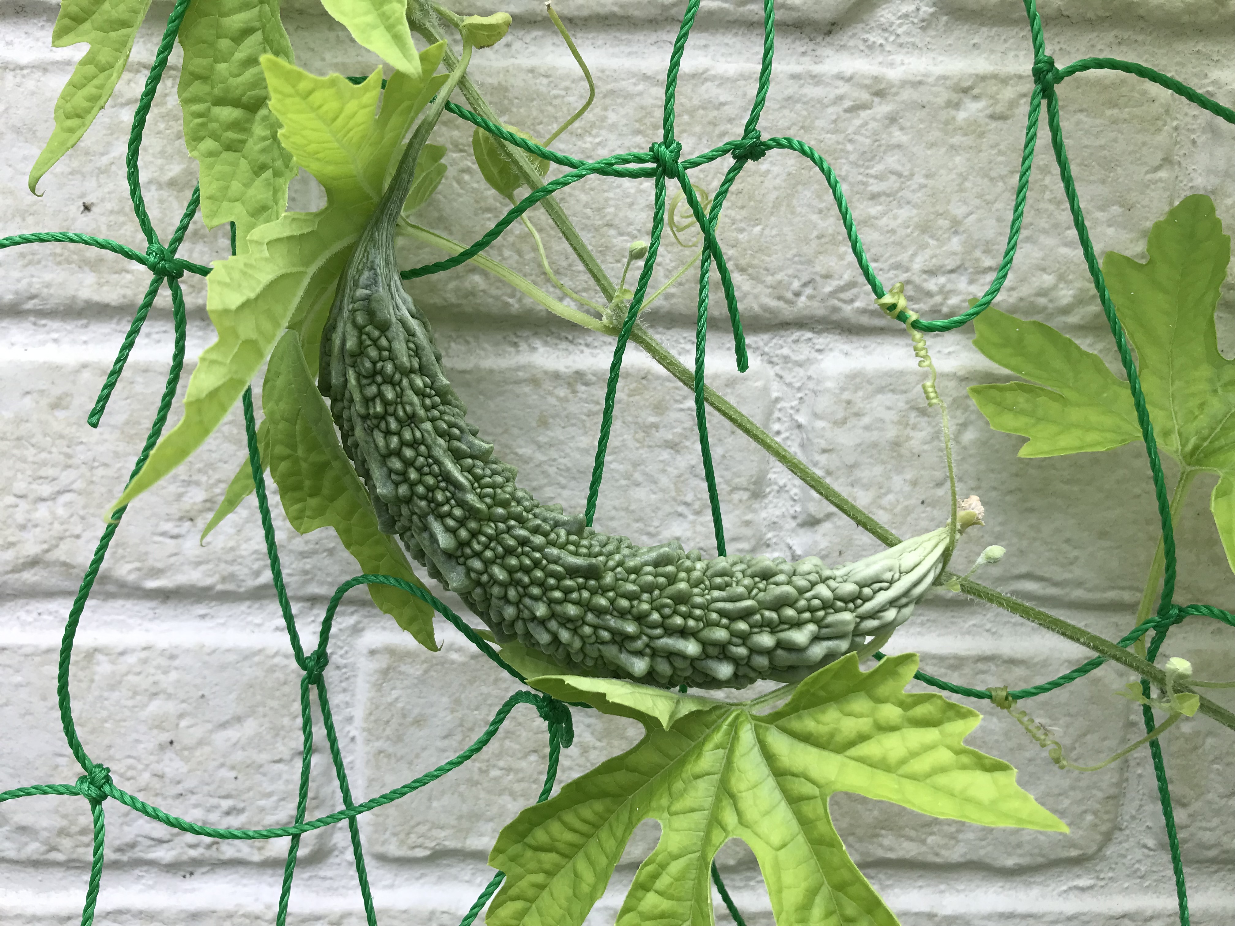 1ケ月前に植えたゴーヤの実が大きくなりだしました。