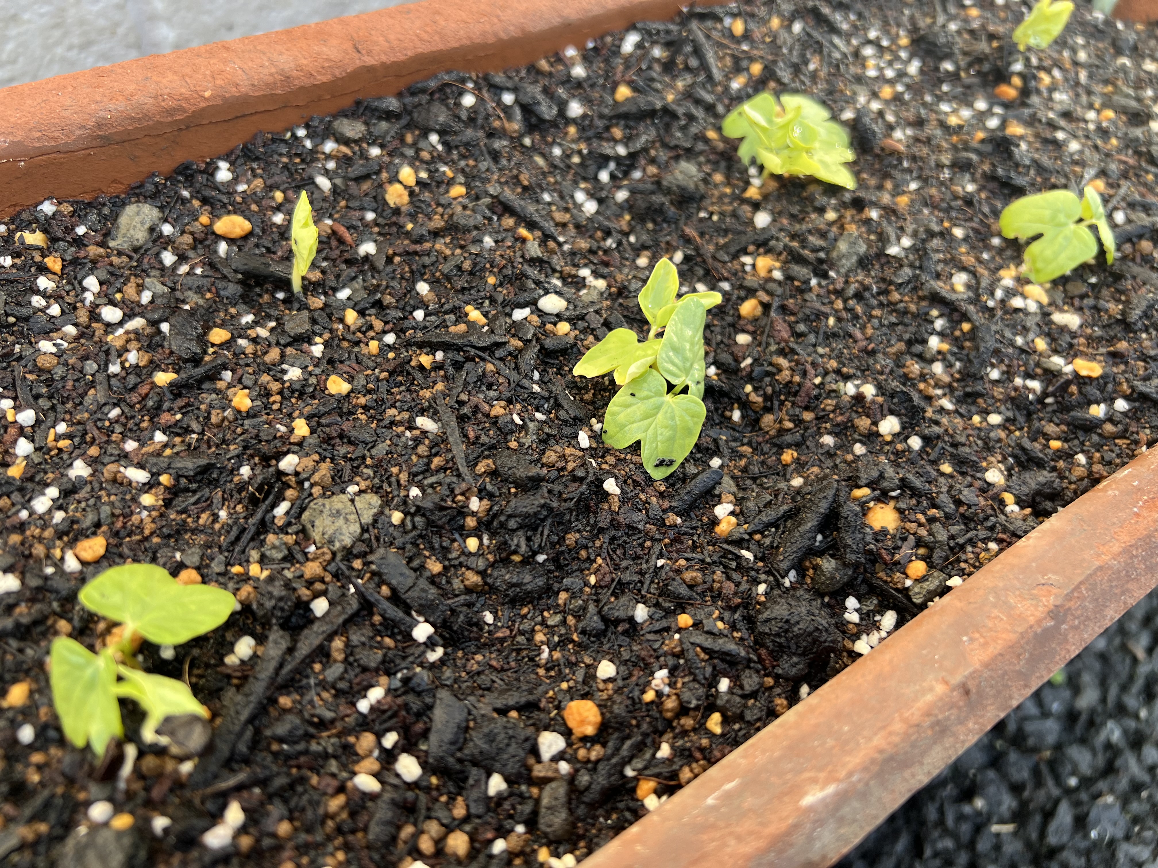 YDC農園に種を植えてから、あっという間に新芽がでてきました。